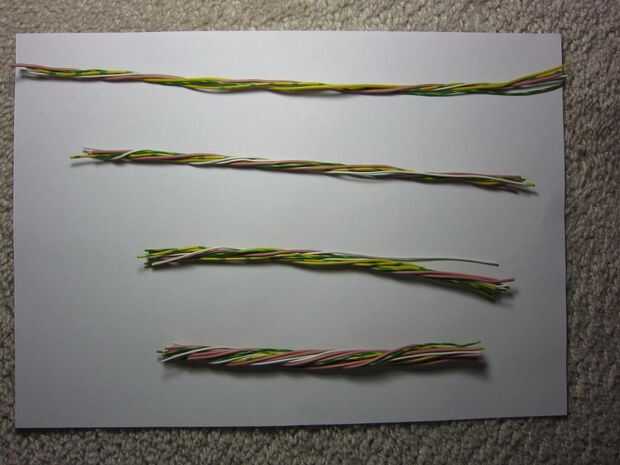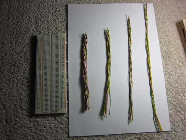 Así que me 16, 19, 23, 29 cm después de 2 cm de cada extremo para envolver alrededor del perno tenemos 12, 15, 19, 25 cm (estándar para los cables de puente comercial de macho a macho) que es bueno para un protoboard grande