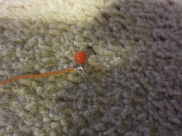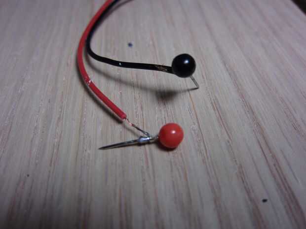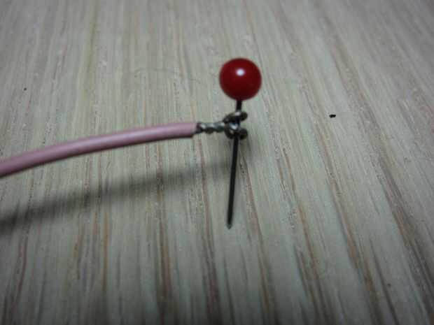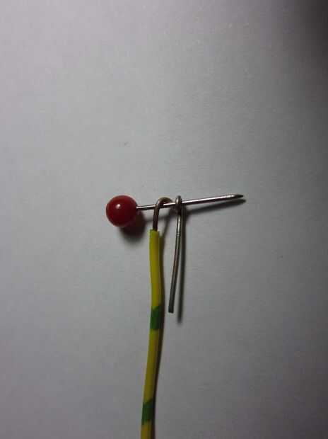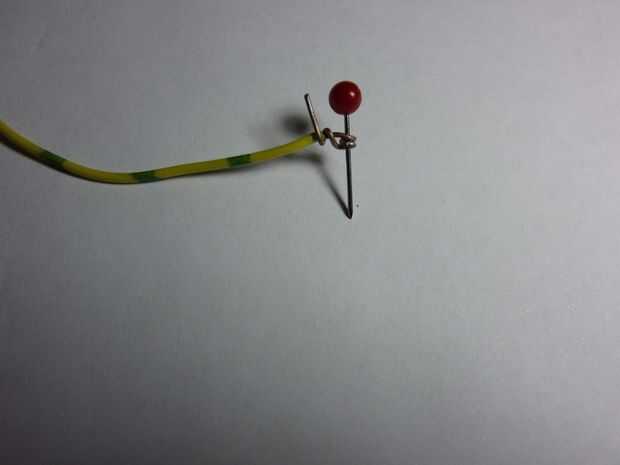 Gire el extremo del hilo dos veces en el primer 1/3 de alfiler (de la cabeza) y gire firmemente con un alicates