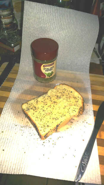 Así que ahora tienes un montón de pan, aceite de ambos lados. Prepárate tú aromas o si eres feliz con la fuerza del ajo infundidos aceite y haciendo simplemente ajo pan, proceder al siguiente paso.