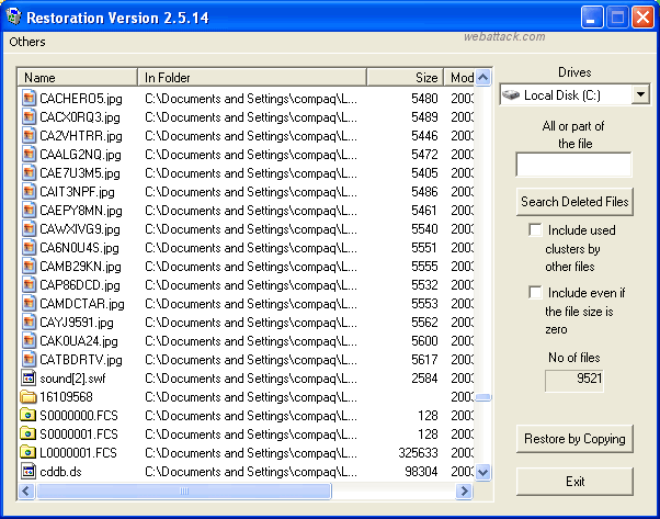 restauración. Descargarlo e instalarlo. El programa se instala en una carpeta en c:/restauración. Haga doble clic en el archivo ".exe" en esa carpeta. Una vez el lanzamiento del programa, le permitirá buscar la unidad especificada. Una vez que los resultados se tiran para arriba, resaltar todos los archivos que desea restaurar y haga clic en el botón "Restaurar de copia".