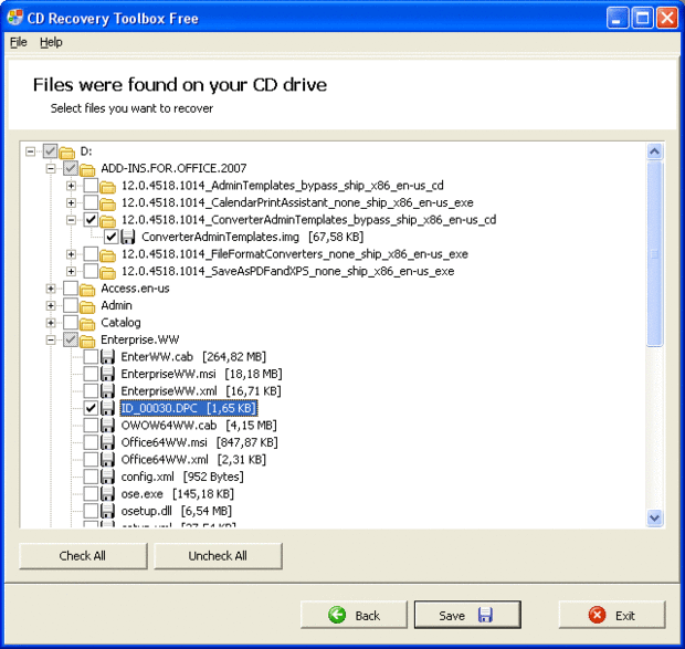 -Seleccione los archivos en el CD que desea restaurar y haga clic en "guardar"
