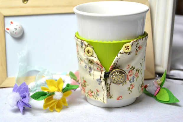 Este es un reciclado de arriba mano coser la manga de la taza de café hecha de tela vieja. Si usted tiene ropa fuera de moda, ¿por qué no hacer algo útil fuera de ellos?