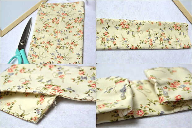 1 º cortar un paño rectangular con medición 30 * 28cm aquí. Se puede medir según su taza. Doblar dos lados más cortos a la línea media;