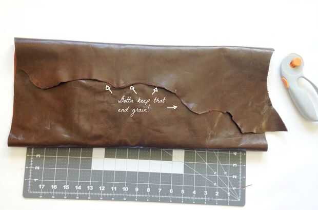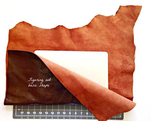 Después de medir, tomé mi pedazo de cuero y jugaba con cómo quería el producto final para ver. Esto es donde descubrí qué increíble es la veta de mi cuero y decidió dejar raw (sin tocar, plegadas) y exponer a ello como la solapa superior.