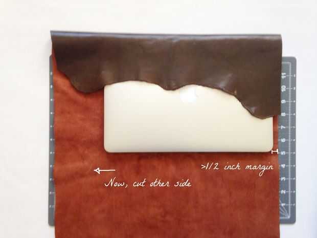 Para la longitud, dobló sobre la tela, por lo que la mitad de él se sentó debajo de mi dispositivo y la otra mitad en la parte superior. Luego decidió cuánto quería la tapa frontal que y agregó que la longitud a la pieza sentado debajo. Imagen 3 de este paso describe mejor este proceso. La longitud de cuero sentado en la parte superior del portátil será la tapa frontal, pero es una pieza continua de la parte posterior. ¿¡ simple, eh?