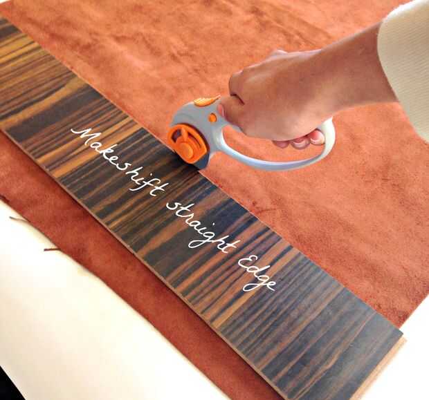 Corté dos bordes rectos con mi lámina rotatoria y la regla improvisada usando el ancho de mi dispositivo y añadiendo un margen de 3/4 de pulgada a cada lado.
