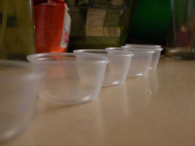 Te mostraría mi estrategia, pero terminé con un contador de pegajoso, picante y dulce y más de la mezcla en el contador que en las copas. Así que probablemente usted debe ignorar mi estrategia de correr y haciendo fuego sobre mi camino a través de la gelatina colada.