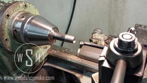 ¿Bien, listo para hacer una herramienta de la manija? tubo de 1/2" se"supone"que tiene una identificación nominal de 5/8". Mina no. Al parecer, el fabricante no obtener la nota. Por lo tanto, tenía dos opciones aquí. Podría bien poner mi pieza en el torno de madera y la mano libre el corte o llevarlo a la tienda de mi amigo y pide prestado un torno de metal. Elegí este último. Aquí estoy usando una barra aburrida para abrir el ID de mi pipa.