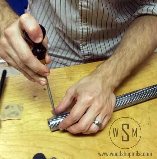 En este punto usted añadirá el espaciador y BBs, si se opta por él. ¿Qué es el espaciador para? Es una buena pregunta. El separador aísla el BBs de la herramienta. De esta manera se puede quitar la herramienta para afilar o cambiar herramientas sin sus BBs corriendo por todo el piso. También, el tornillo 5/16 es solo rosca en el espaciador para cerrar el agujero. Siempre podría girar un cilindro pequeño para colocar el ID de su pipa y renunciar a los $1,96 para comprar en HD.