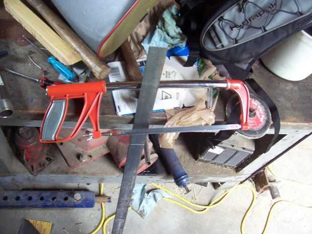 Cortar la pieza. Dependiendo del tipo/grosor del metal y de cuán grande es su machete, puede que desee dos. Resulta que no.