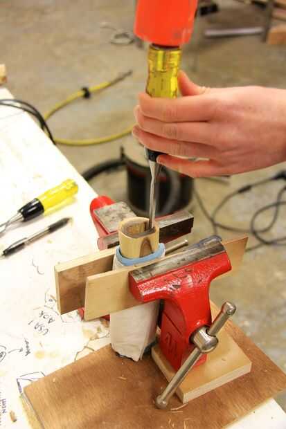 Hay muchas más formas de hacer la mortaja, incluyendo el uso de sólo un cincel de principio a fin o un accesorio de la mortaja para el taladro. Esto era simplemente la manera más rápida y fácil para nosotros.