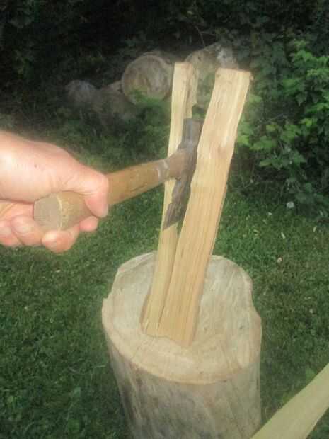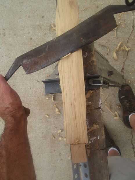 Comience con el cuchillo de sorteo que hace una superficie plana en un lado de la pieza. Cuando usted tiene aplanado, dale la vuelta y aplanar el otro lado. La pieza debe ser lo suficientemente largos para cortar una o dos pulgadas de cada extremo.
