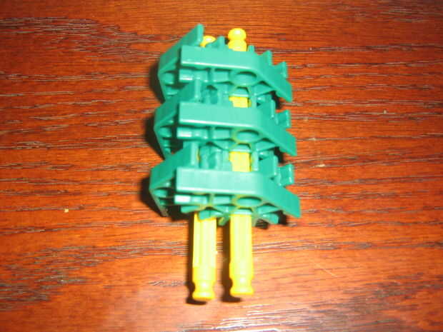 Verdadero disparo un tiro principiantes KVG pistola. Este es mi primer arma y instructable así que por favor no comentarios ásperos.Paso 1: mango Esto es muy fácil todo lo que haces es agarrar algunos conectores verdes y 2 barras de color amarillo y