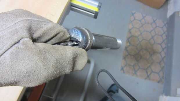 Entonces alimente cada extremo de la cadena a través de las ranuras en la manija. Mantener la cadena a través de la alimentación hasta que tenga aproximadamente 5" de la cadena que sale el extremo posterior de los mangos.