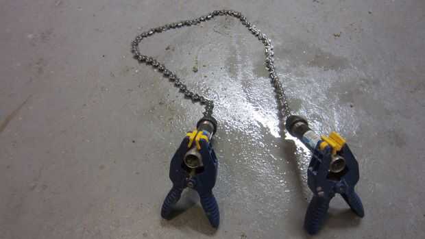 Tienes que dejar la sierra reposar unos días para que el hormigón tenga suficiente tiempo para establecer. Encontré que tomó un tiempo para el hormigón completamente seco (creo que lo dejé durante 5 días o menos). Utilicé unas abrazaderas tal como está para que el concreto mojado no se derrame hacia fuera.