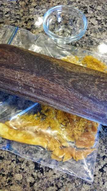 1. machacar los chips de mango congelado seco en polvo.