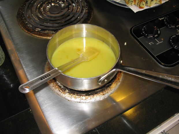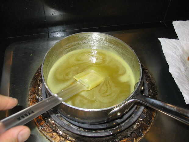 Si no es lo suficientemente gruesa, intenta añadir algunas almidón de maíz o fécula de patata. Quitar parte del líquido, enfriar y añadir el almidón. Una vez disuelto, agregar la mezcla hacia el líquido caliente. Si agrega el almidón directamente al caliente líquido corres el riesgo de formando trozos que son casi imposibles de disolver.