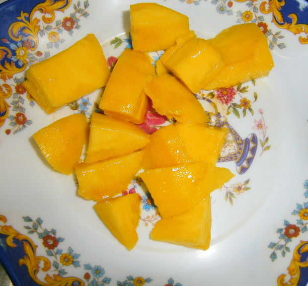 Cortar el mango en cubos pequeños.