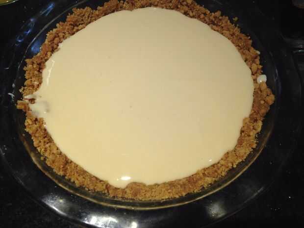 Vierta la mezcla en la tarta y hornear de 5 a 7 minutos en un horno precalentado a 350.