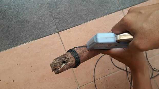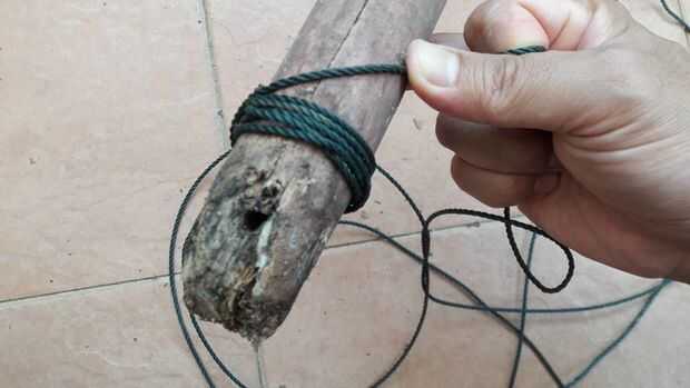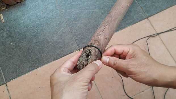 1. En primer lugar, me Envuelva el extremo de la madera con el hilo de nylon y atar firmemente.