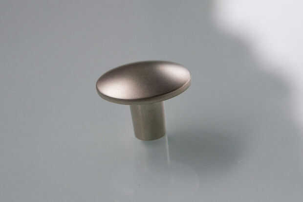Para la base del mango encontré un tirón de cajón aspecto aseado en mi ferretería local que coinciden perfectamente. Sólo taladré un agujero en la base de la manija para que la parte superior de la atracción encuentra al ras contra la manija.