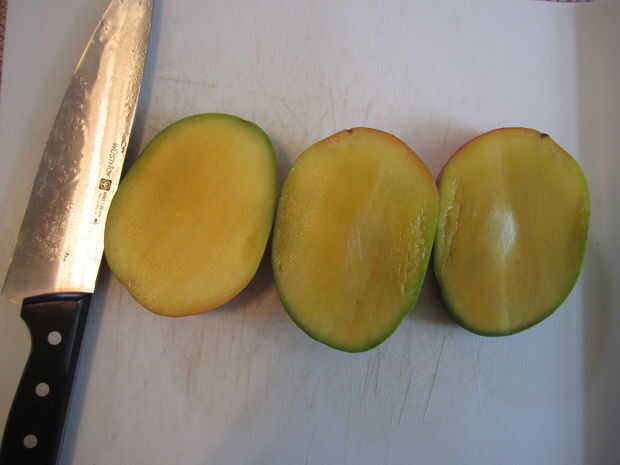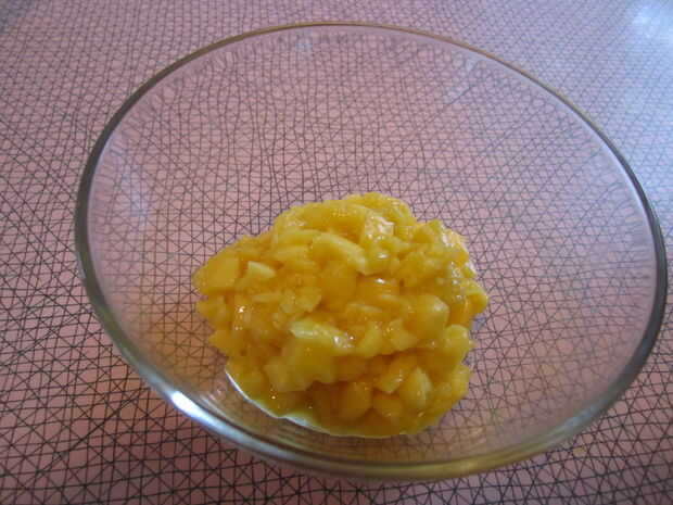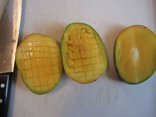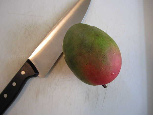 Una vez que hayas anotado el mango, inviértala y cortar todos los bits de comestibles y luego picar todo muy fino. Desea una amplia gama de texturas, desde la pulpa a trozos más grandes. La última foto debe dar la idea correcta.