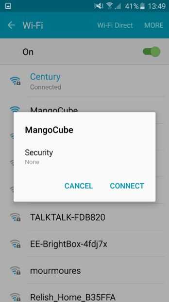 Una vez que MangoCube aparece en redes disponibles de WiFi utiliza su teléfono inteligente (Android/iOS) para conectarse.