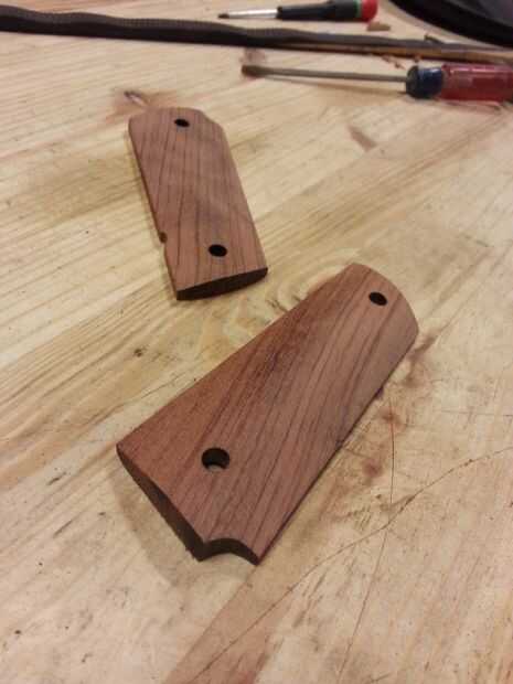 El primer paso es sacar a las viejas manijas. Luego se les traza a su madera deseada para las manijas y manos a la obra. Como esto no es trabajo muy difícil y puede parecer monótono, insto a que no se lo apresure a. de todos modos, una vez que trace y corte los mangos en la sierra hacen marcas donde van los agujeros para los tornillos, que es mejor hacerlo antes de que curva las manijas, ya que son fáciles de fijar y cambiar mientras están todavía en bruto.