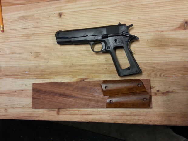 Para este instructable, voy a suponer que cualquiera que se quieran hacer esto será edad suficiente y lo suficientemente sabio como para manejar una pistola y por lo tanto, las herramientas eléctricas. Por favor estar seguro si va a utilizar cualquiera. Antes de nada Asegúrese de que la pistola no está cargada, no hay una ronda en la cámara y el cargador es expulsado. También mantener el arma fuera del poder para que el serrín no entrar en ella.