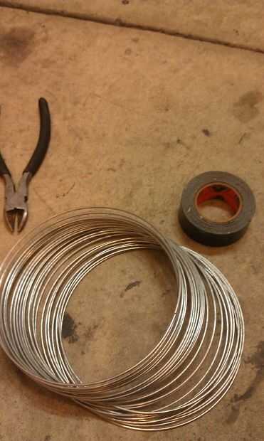 galvanizado alambre - usted puede conseguir un carrete entero en walmart por como $2.50 (un calibre más fino probablemente trabajaría mejor que lo usé)