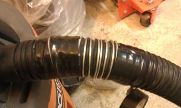 Tire de la manguera termina apagado por lo que sólo puede trabajar con la sección interior flexible. Deben ser en bastante apretado, pero un giro rápido firme debe liberar los extremos (al menos para ridgid barato de la marca shop-VAC).