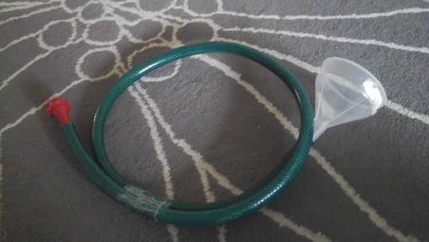 aquí es cómo hacer una trompeta de artículos para el hogar. Suena como la cosa real, excepto por el hecho que no tiene válvulas.Paso 1: materiales Ya necesita...O pequeños longitud de manguera de jardínEmbudo O de tamaño medianoBoquilla de trompeta O