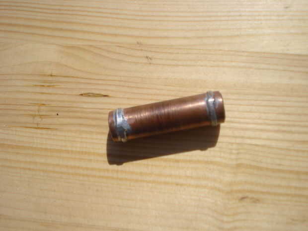 - Use cable de cobre (de unos 24 cable calibre, puede salvar cable de cat5 sólidos filamentos) y envolver tres veces alrededor del tubo y gire los extremos. Debe ser agradable y apretado y se encuentran en una capa plana agradable.