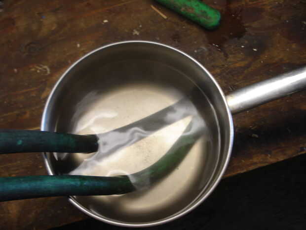 Inserte el tubo de reparación, a veces resiste hay unos SIDA: lubricarla (yo uso un poco de jabón). (algunos tubos de plástico duro como la pipa bien pueden beneficiarse de un golpe de calor de una antorcha). A veces utilizo una herramienta como las pinzas de edad mostrado en la imagen para ampliar el extremo de la manguera un hacen más fácil conseguir el conector. Calefacción agua caliente ablandará muchas mangueras sin sobrecalentamiento o ardor.