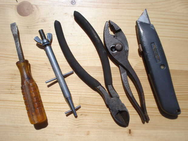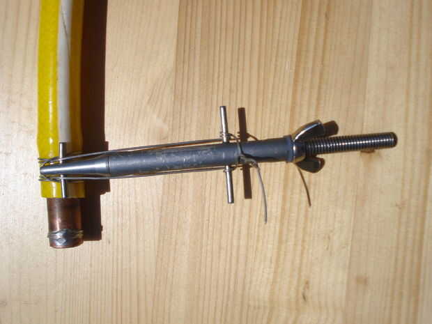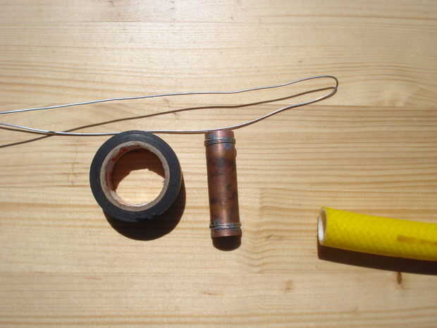 (necesita la herramienta de sujeción como el clamptite, alambre, cortadores de alambre, pinzas, navaja de bolsillo, tubo desde arriba, cinta aislante negra y algunos otros materiales de varios mencionados en el texto)
