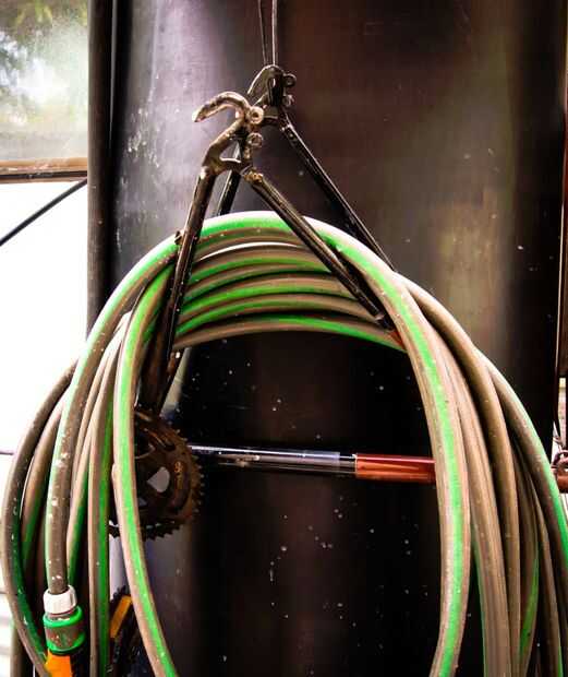 Cuando necesitaba un rack de mangueras y también tuve una bicicleta rota más allá de la reparación, esto es lo que hice.