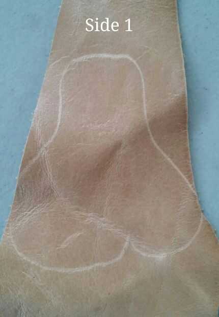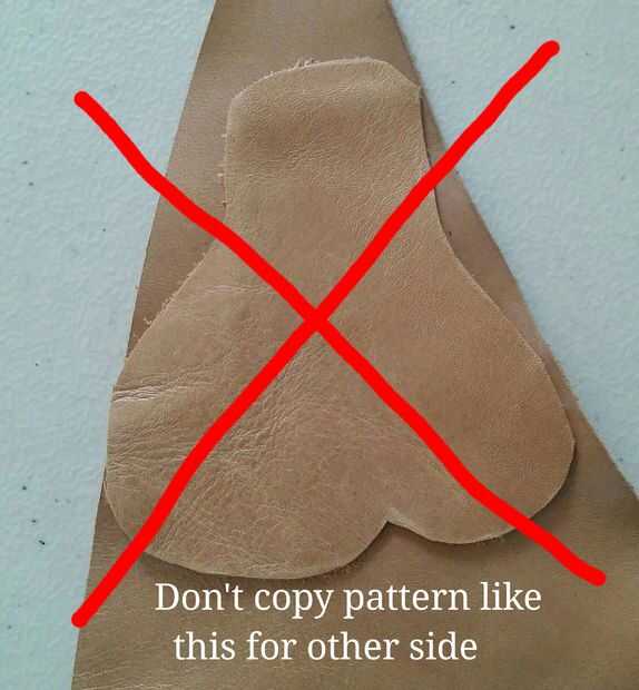 2-cortar el otro lado. * Nota * usted necesita invertir la primera pieza de corte de cuero (o patrón) para que cuando se corta que puede hacer coincidir ambos tamaños.
