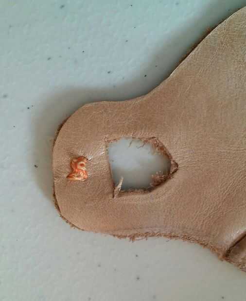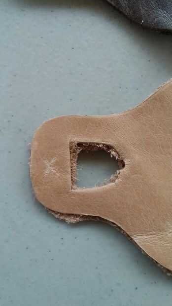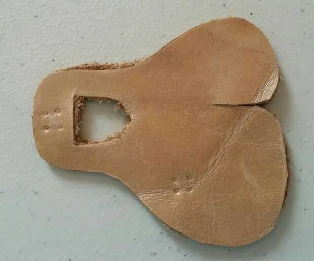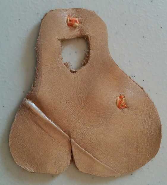 1 - hay dos lugares en la piel que debe ser cosido juntos. Las dos ubicaciones aproximadas son señaladas, como por los 4 agujeros para cada parte.
