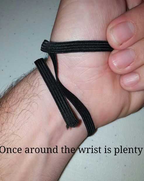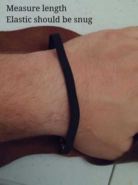 1 - medir una pieza de elástico que es aproximadamente la anchura de la muñeca. Se necesita coser la primera pieza de elástico cerca de la muñeca. Asegúrese de que el elástico se coloca en la dirección del manguito. Realizar puntadas similares como antes, lo suficiente para asegurarse de que tiene. Terminar la costura con un nudo o 2 o 3.