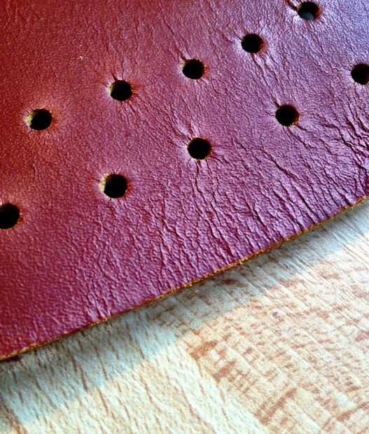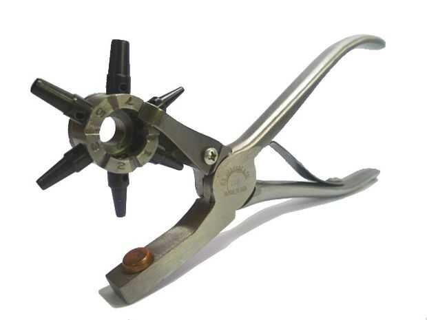 Coloque la plantilla en el cuero y marcar todo el agujero de centros a la piel con una aguja. Tomar los alicates de sacador y perfore todos los agujeros que ha marcado con la aguja. Como no está seguro de qué tipo de encaje ganchos que usará, deje estos agujeros para el paso 5.