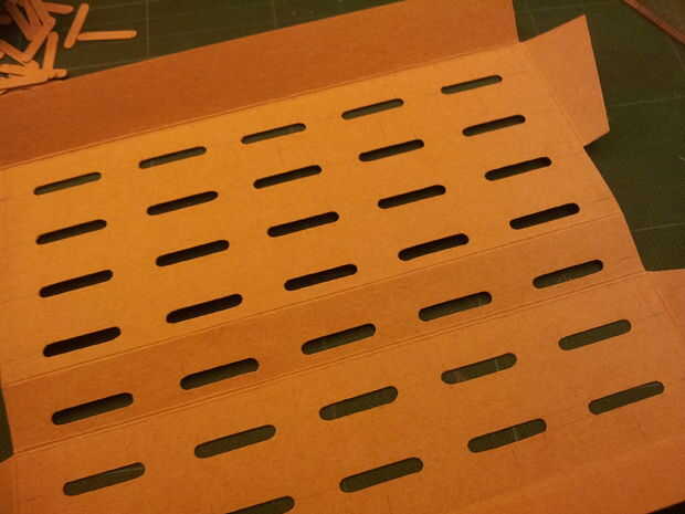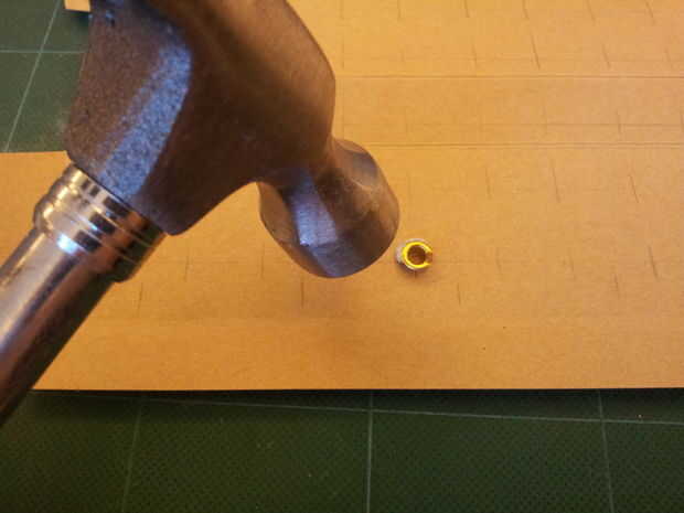 Para perforar los agujeros, la forma más fácil es hacer uso de un punzón con hoja redonda en la punta. Sin embargo, no tiene uno. En cambio, se utilizan pinzas. I fijar la posición de pinzas con algunos blue-tack y entonces golpear de un martillo con un poco de fuerza. Debe dar el mismo resultado que con el punzón.