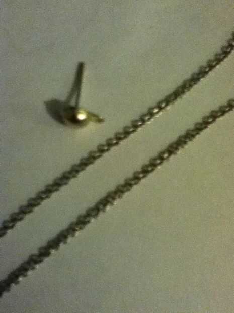 OK esto puede ser diferente dependiendo de qué pendientes tienes pero básicamente puse un anillo pequeño salto en el perno prisionero de la pendiente (si la cadena se utiliza los ajustes a través del agujero en el perno no es necesario) y roscado el la cadena a través para su plegado. Cortan ambos extremos de la misma longitud sin embargo largo desea la cadena ser (hice 6cm) y fije los extremos a otro anillo del salto. Luego deslícelo sobre el manguito y poner un poco de pegamento detenerlo deslizamiento.