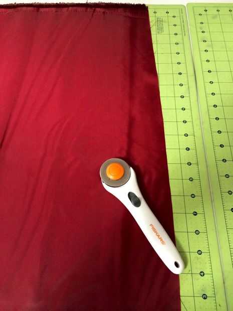 Usando su patrón de rectángulo creado, simplemente trace el borde de cada material con su cortador rotatorio. Continuar el corte a través de los materiales de revestimiento, bateo y piel.