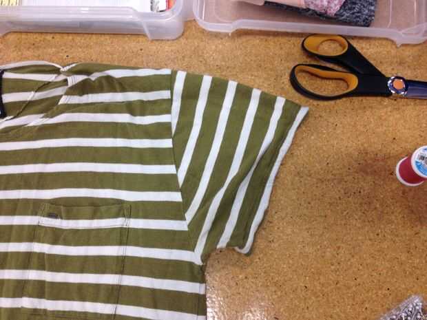 Esto es una forma sencilla para modificar las mangas de las camisetas que son demasiado largos, o para agregar interés visual, sin la permanencia del dobladillo. Hice esto en TechShop Chandler con pocos suministros de costura básica. http://www.techshop.ws/