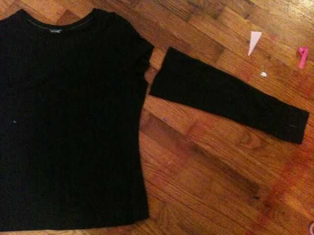 Tomar su camisa de manga larga y corta las mangas. Mina de como corté cerca de la costura como pude porque yo quería que ser tan largo como sea posible, pero realmente les puede hacer cualquier longitud que desee.