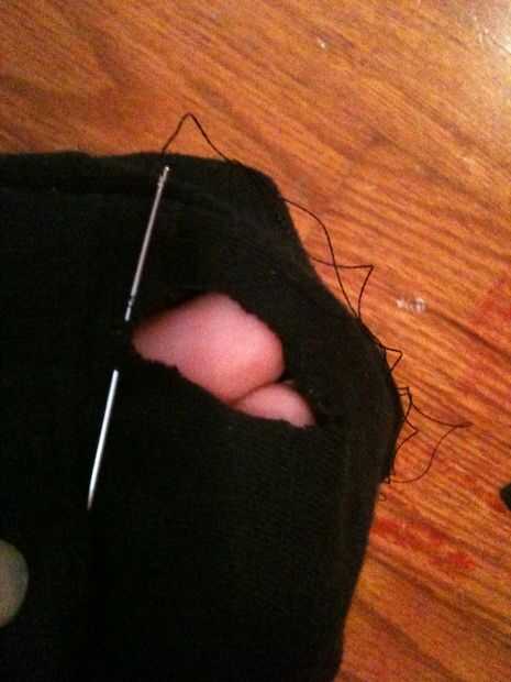 Una vez hecho esto, con tu puntada aguja e hilo todo el camino alrededor de la abertura del agujero. Esto desalentará la deshilachada y mucho estiramiento.