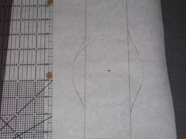 Utilizando esta línea como guía, el tazón de fuente pequeño del centro sobre él y traza un círculo.