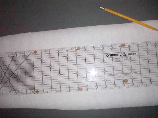 Señalar el final de 2 1/2 pulgada del lado más largo como "plegar". Este lado se apoyará contra el pliegue de la tela cuando usted corta.