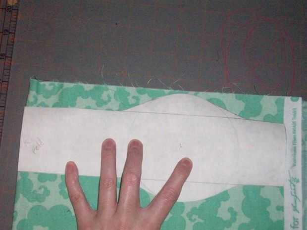 Alisar hacia fuera la tela y doblar por la mitad. Ponga la plantilla contra el doblez con el lado señalado. Corte con cuidado alrededor de plantilla usando tijeras o un cortador rotatorio. Hacer esto para la tela de algodón, minky y guata de algodón.