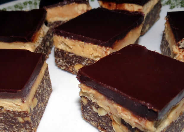 Aunque se crió en Nueva Inglaterra y visitó Canadá en varias ocasiones, nunca he tenido la oportunidad de probar el increíble trato canadiense conocido como barras de Nanaimo (no cerca moe). No fue hasta hace poco, aquí en Florida, que primero probé y cayó en amor con ellos. Me encanta la capa de crema pastelera en la receta tradicional, pero he tomado la sugerencia de mi esposa y he creado una capa de crema de mantequilla de maní para llevarlos al siguiente nivel. He visto algunas recetas en línea, utilizando mantequilla de cacahuete, pero estaba preocupada de que sea demasiado aceitoso y no ser lo suficientemente claro para la capa de crema. Hace unas semanas descubrí PB2 - cacahuate deshidratado! Fue este producto que me ayudó a realizar esta receta.